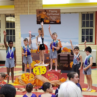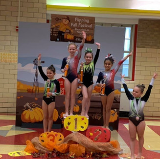 4 rookie tumblers, Ella, Parker, Cora, and Claire placed 1st in events.